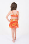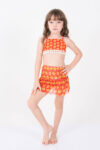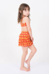 Biquini Peach, top com detalhe em franja e calcinha com babadinho na cintura.