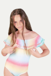 Maiô estampa Degradê Sun. Detalhe das sianinhas também em degradê no babado deixam a peça ainda mais fofa.
